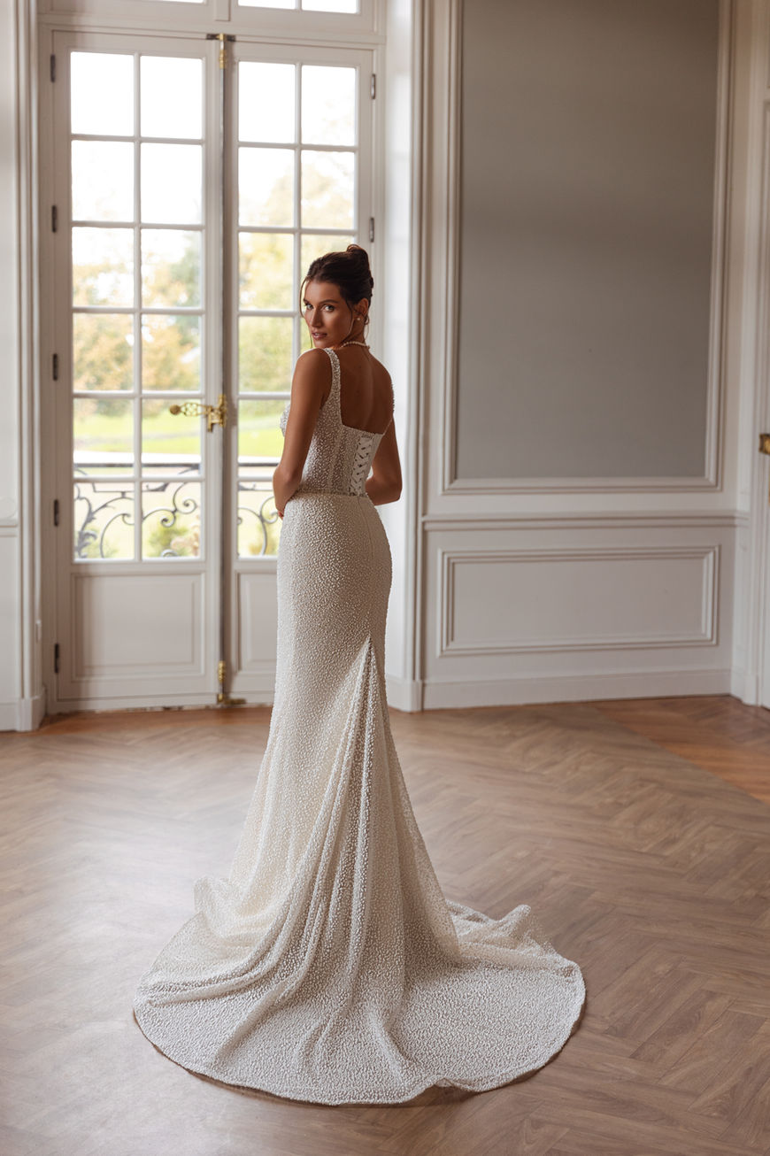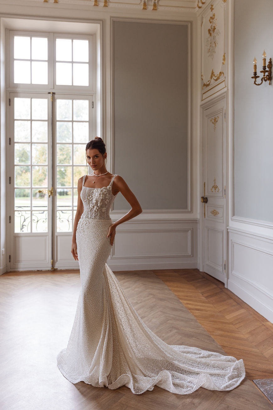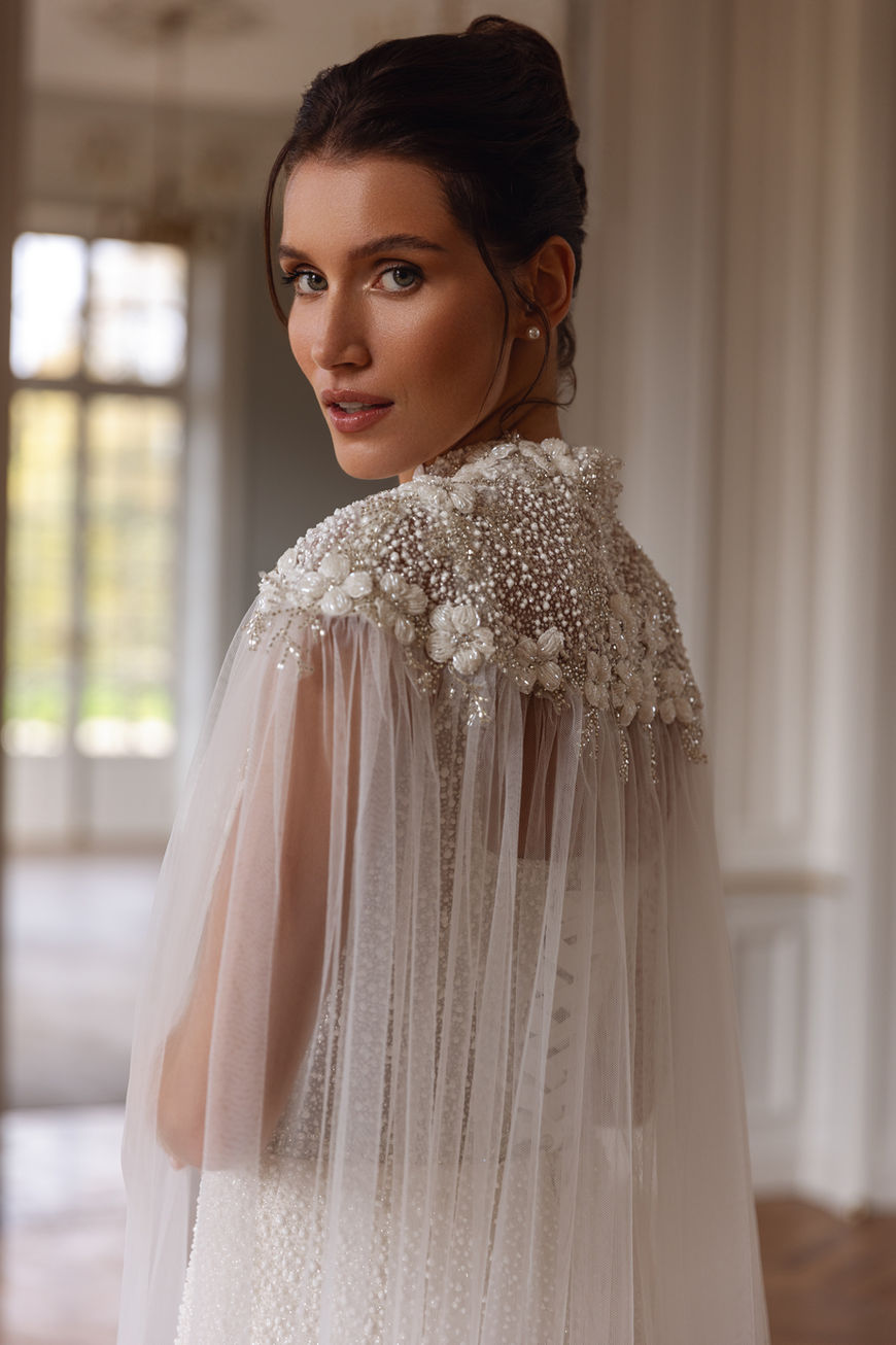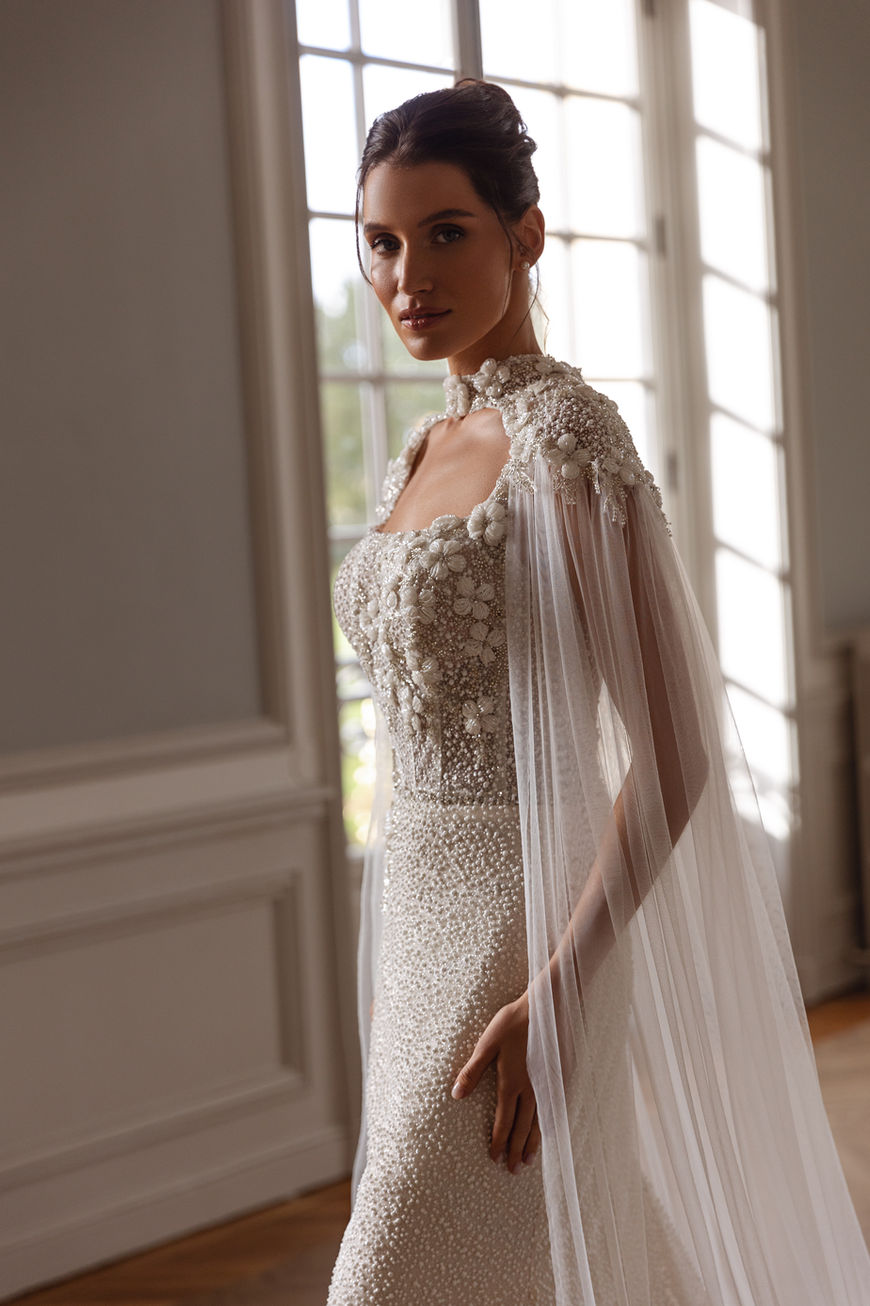 SIRENA WEDDING DRESS WITH FLOWERS and detachable bolero.