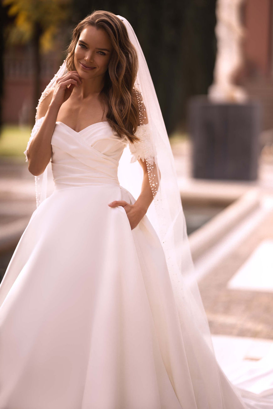 VRODA 16 is a wedding dress made of taffeta with pockets.