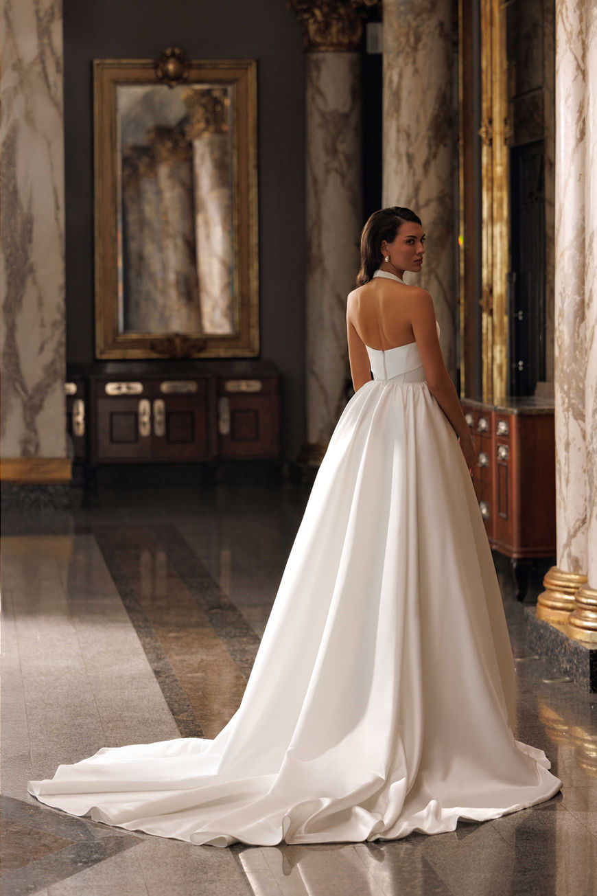 WEDDING DRESS WITH MODERN CORSET AND HALTER STRAPS impresses with elegance and refinement.